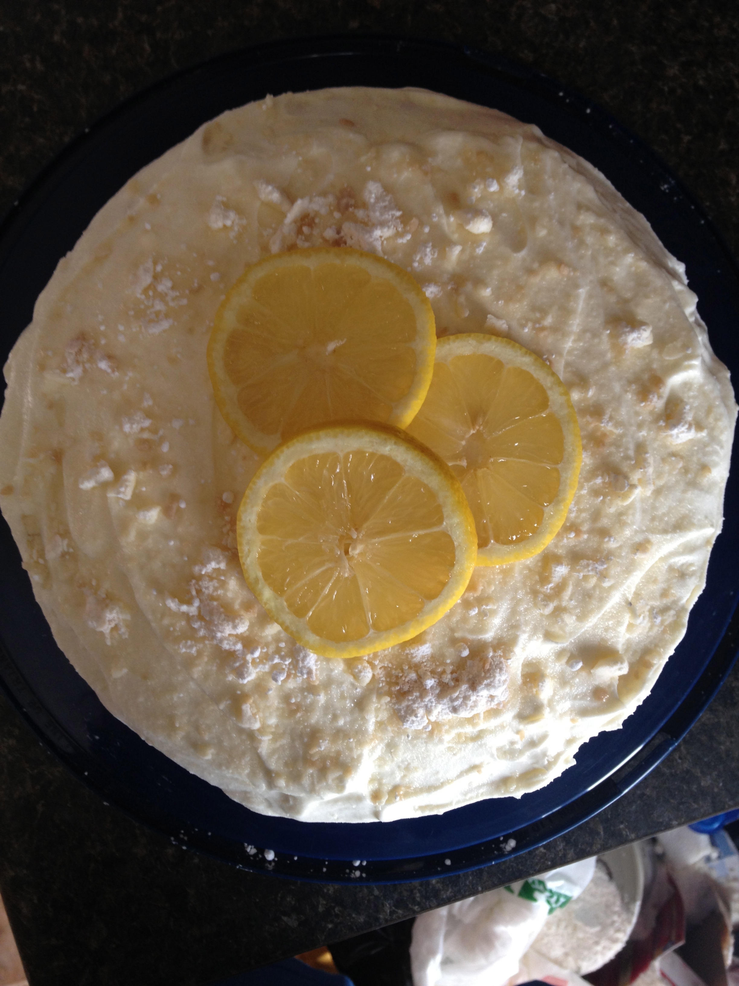 -Cut the fresh lemon into slices to decorate the top of the cake as you please