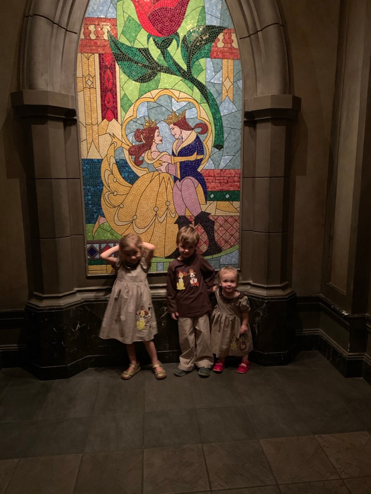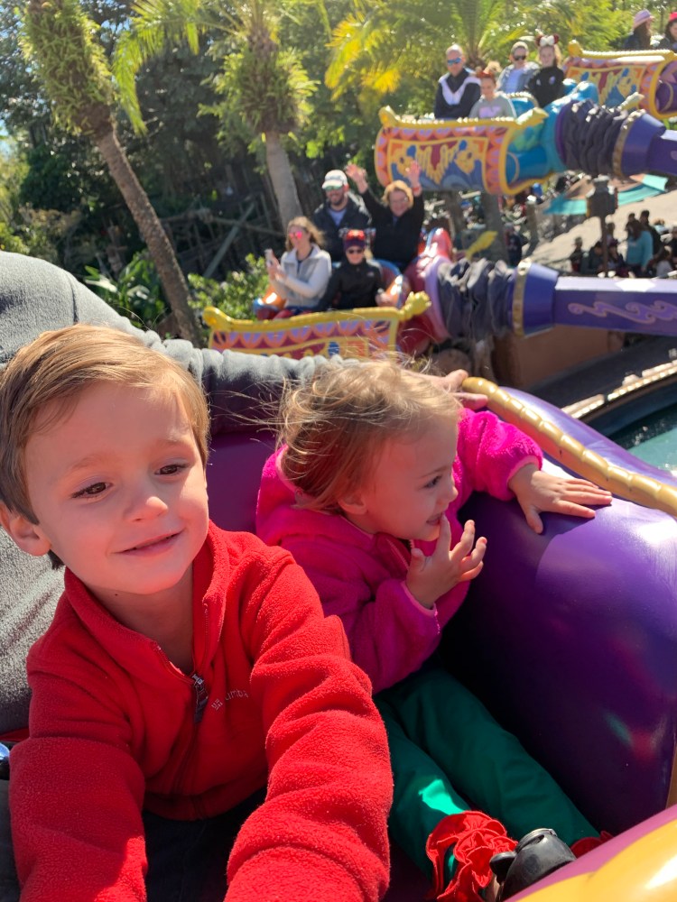 After breakfast we walked over to Magic Kingdom to start our day. We had a FASTPASS to 7 dwarves but the ride was down for most of the morning. This ended up being okay because we used that FP on Big Thunder Mountain instead which Lorelei had never rode before and she really loved it! The twins also rode Splash Mountain with Andrew for the first time and even though it was super cold that day they didn’t get wet and had a blast! The first several days of our trip the weather was in the high 80s but the last 2 days a cold front came through and it was in the low 60s.