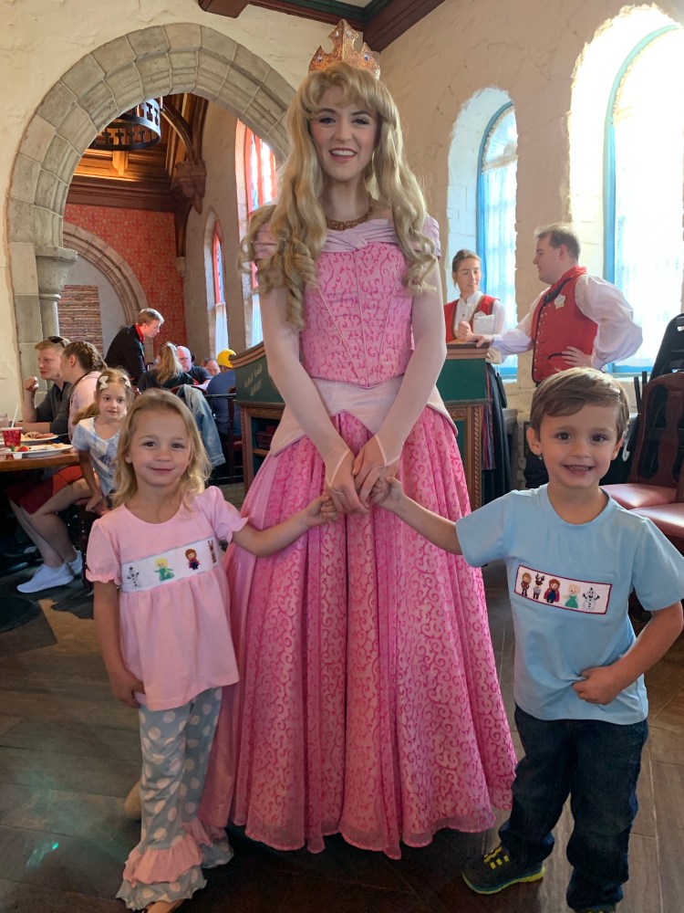 We started our day 2 with a quick Skyliner ride to Epcot for a pre park opening Princess breakfast at Akershus in the Norway pavilion. If you’ve read my other Disney posts, you know we are a fan of Akershus breakfast, but not lunch or dinner. Princesses are there all day but the food for lunch and dinner is traditional Norwegian and not our style. Breakfast includes Mickey waffles, eggs, sausage, bacon, hash brown casserole, fruits, cheeses, and pastries. Belle has her own photo area prior to dining (which I’ve always thought was weird because Belle is French and Elsa is Norwegian, but I digress) other princesses there include Cinderella, Aurora, Snow White, and Ariel. These are subject to change on any day but we’ve been several times over the last 4 years and they’ve always been the same.