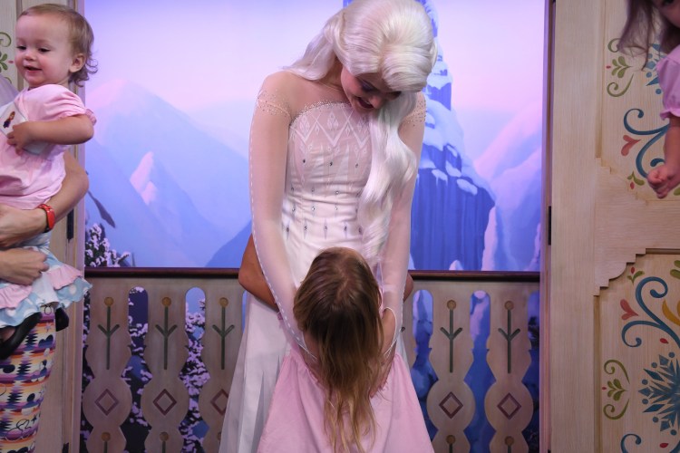Frozen 2 came out a few days before our trip so the Queen sisters were wearing their new dresses when we saw them! This absolutely thrilled Lorelei because Elsa was wearing her new white dress!