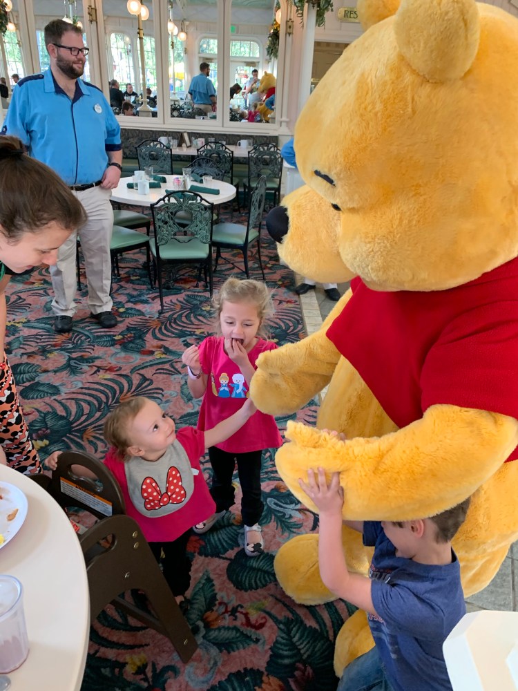 Day 5 was finally our full Magic Kingdom day! MK days are not done in true Rowlett fashion without a meal at Crystal Palace and breakfast is definitely the best! Typical breakfast buffet with characters Pooh, Piglet, Eeyore, and Tigger.