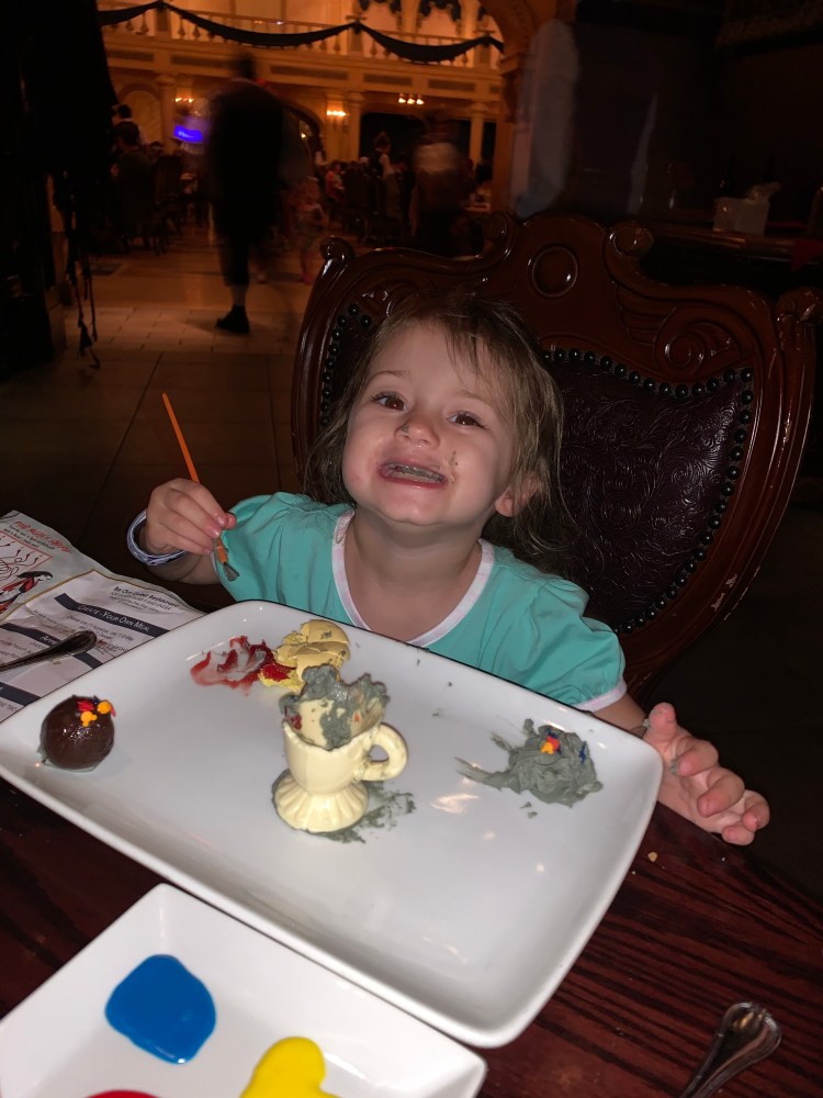 We had dinner at Be Our Guest, the only place at WDW you can meet the Beast! Rhett loves the Beast and of course of little Belle has to have dinner in her castle!