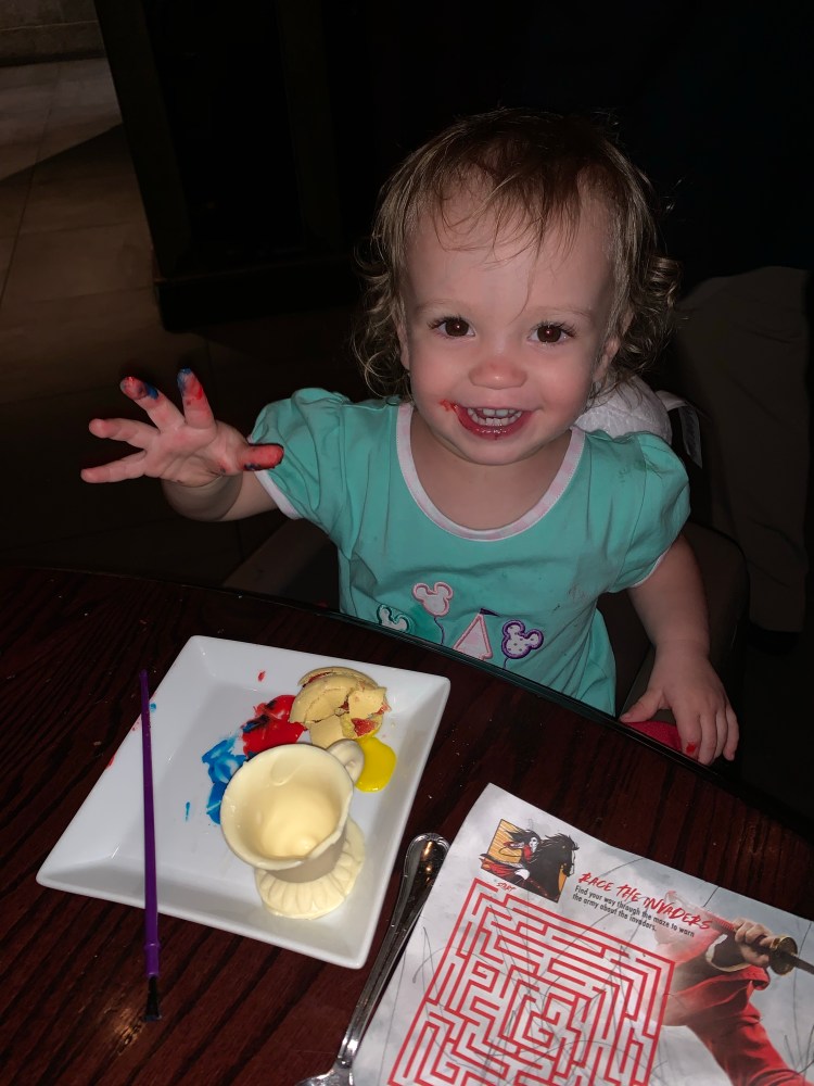This was during Epcot’s Festival of the Arts and Andrew found an amazing painting of Anna and Elsa that reminded us so much of Lorelei and Maggie Mae we just had to get it! We had dinner at our favorite restaurant in all of Disney, Via Napoli, before calling it a day!
