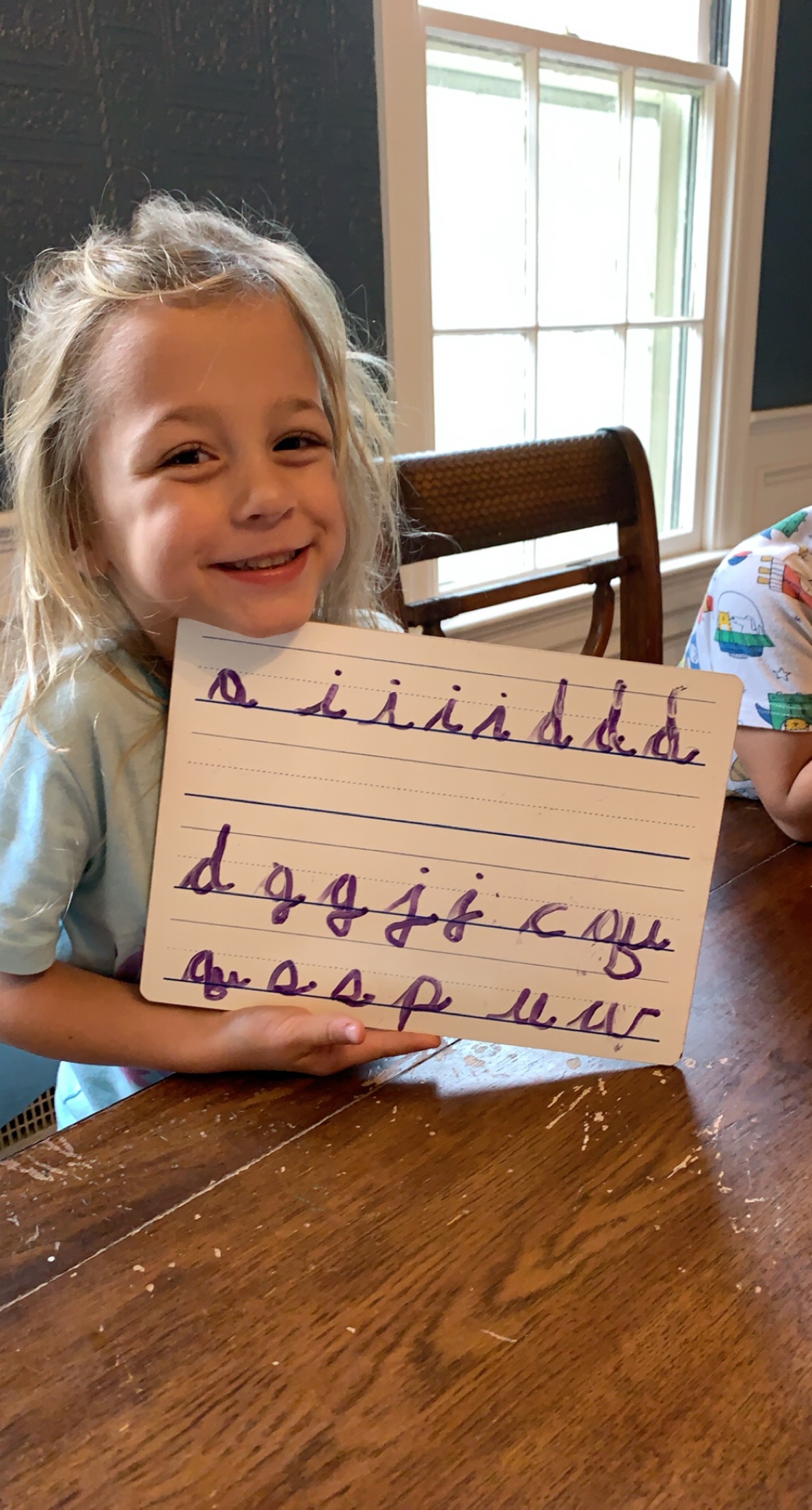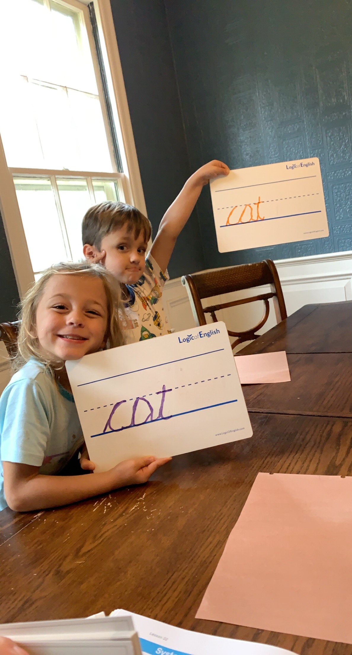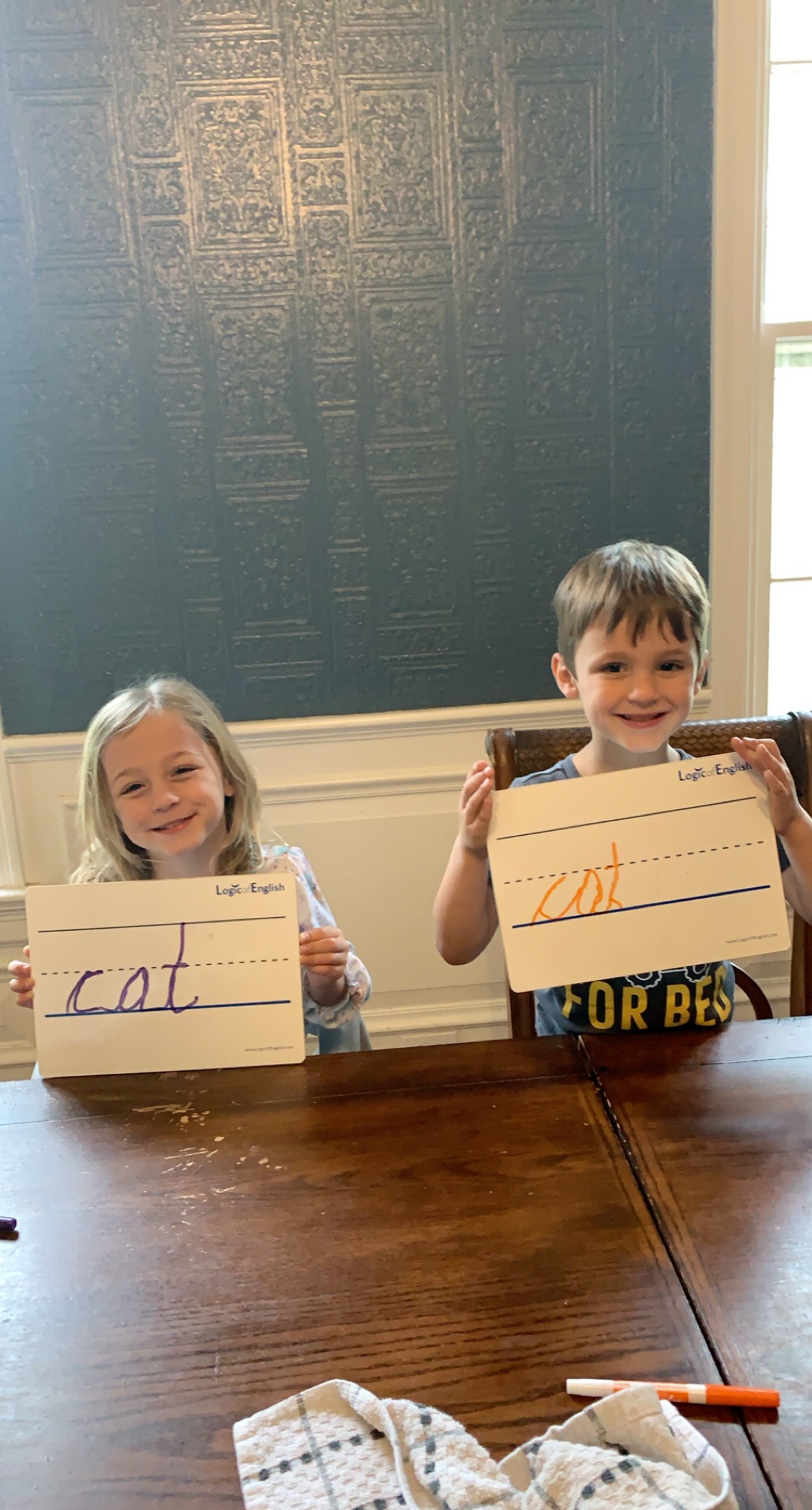 The twins finished up their entire Kindergarten Primer curriculum from The Good & The Beautiful at lightening speed. It was really too easy for them and they blew through it so fast. I don’t want to rush them into a full Kindergarten program a year early so we’ve just been focusing on continuing to learn to read and write in cursive. We are using Logic of English for this and it’s really such a good thorough approach to building foundations of reading, writing, and spelling. They are 4 years old and really flourishing with it. All 4 kids are involved in our school routine, it’s the easiest way to accomplish the most without someone being needy or destroying the house while the others are working. We start every day with a Bible lesson and memory verse every week that all 4 kids take part in. After that MM does her little worksheets and then her and Belle color while the twins do their lesson. We don’t spend more than 30 minutes a day total on school work for the twins so it’s very easy for MM and Belle to occupy themselves coloring in that short time frame. Typically we fit in our school stuff whenever we have time depending on what plans we have for the day. Sometimes that’s first thing in the morning and sometimes that’s right before bed. They never let me forget that we haven’t done our lessons for the day, even on Sundays I have to remind them we don’t work on Sundays.