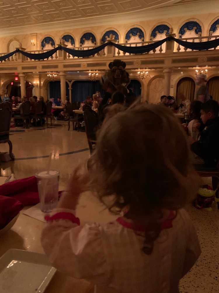Because we had a baby this trip we decided to spend several days at Magic Kingdom because it has the most rides with no height restrictions. This is also one of the reasons we stayed at the Contemporary again so we could just walk there. Magic Kingdom is always beautifully decorated for Christmas and we did spend Christmas Day there. It was really crowded and wait times were pretty long, but definitely way less crowded than a typical Christmas Day at Disney pre-covid! We had dinner one night at our favorite Be Our Guest and another night we were super excited that Cinderella’s Royal Table had opened back up! We always get the steak at CRT but this time Andrew and I both opted for the salmon and were so glad we did, it was wonderful!